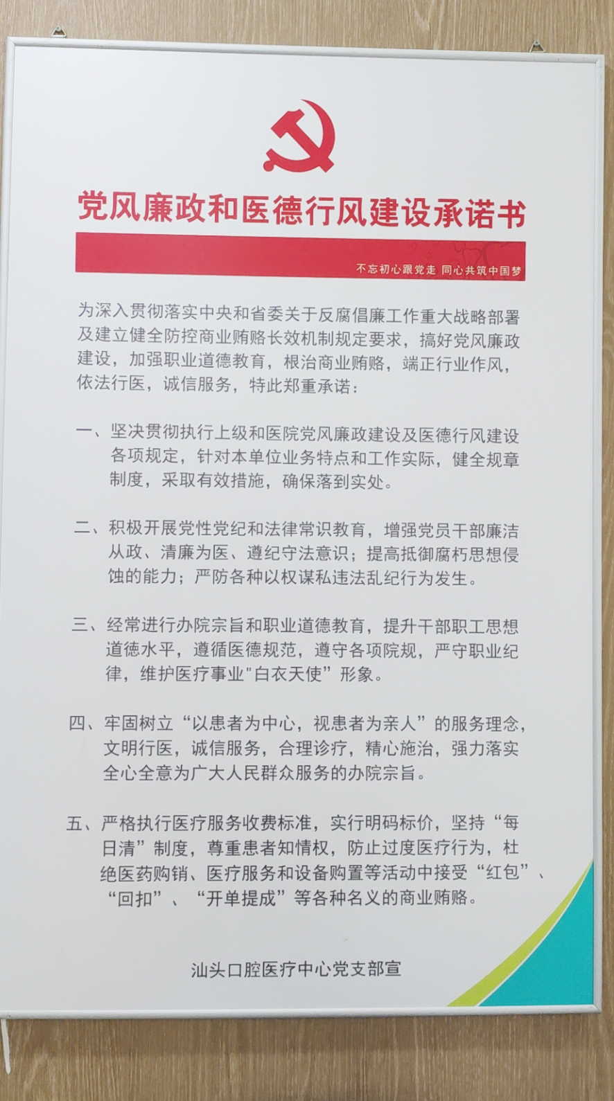 圖:汕頭口腔醫(yī)療中心黨風(fēng)廉政和醫(yī)德行風(fēng)建設(shè)承諾書
