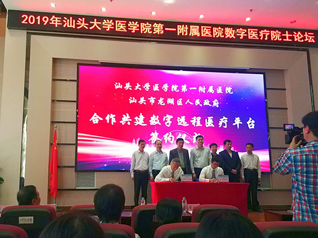 會議在汕頭市衛(wèi)健局黨委鄭曉奇書記和汕頭市龍湖區(qū)委孫健文常委發(fā)布的講話中拉開序幕,在嘉賓和與會人員的見證下,汕頭大學(xué)醫(yī)學(xué)院第一附屬醫(yī)院副院長陳永松與汕頭市龍湖區(qū)委常委孫健文就附一院與汕頭市龍湖區(qū)人民政府合作共建“基于5G應(yīng)用的互聯(lián)網(wǎng)+遠程智慧醫(yī)療平臺”項目進行了簽約儀式。