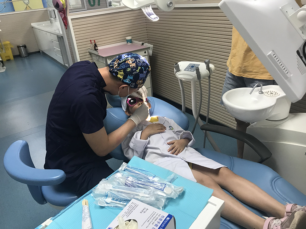 在醫(yī)護(hù)小姐姐的帶領(lǐng)下,小牙醫(yī)們換上正式的工作服,認(rèn)真地學(xué)習(xí)愛牙護(hù)牙的理論知識,然后來到兒童牙科醫(yī)生們的工作崗位上,仔細(xì)地觀察醫(yī)生們都是如何為小朋友們檢查口腔健康情況、治療牙齒疾病的。隨后,小牙醫(yī)們也親身體驗了一番。