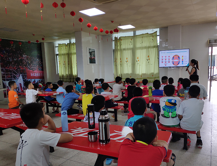 當天下午15:00,義診團隊來到未來雄獅訓練基地學員樓,首先為31位小學員上了一堂愛牙知識普及課。醫(yī)生詳細講解了牙齒的結(jié)構(gòu)、什么是齲齒、兒童齲病的危害及預(yù)防等兒童口腔健康知識。針對孩子們?nèi)粘5挠柧?,醫(yī)生著重介紹了兒童牙外傷的預(yù)防及應(yīng)急處理,提醒孩子們應(yīng)注意牙齒的防護。