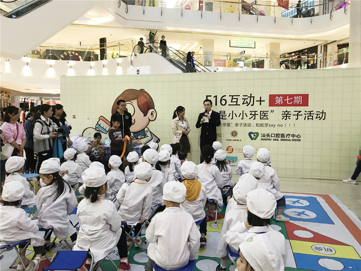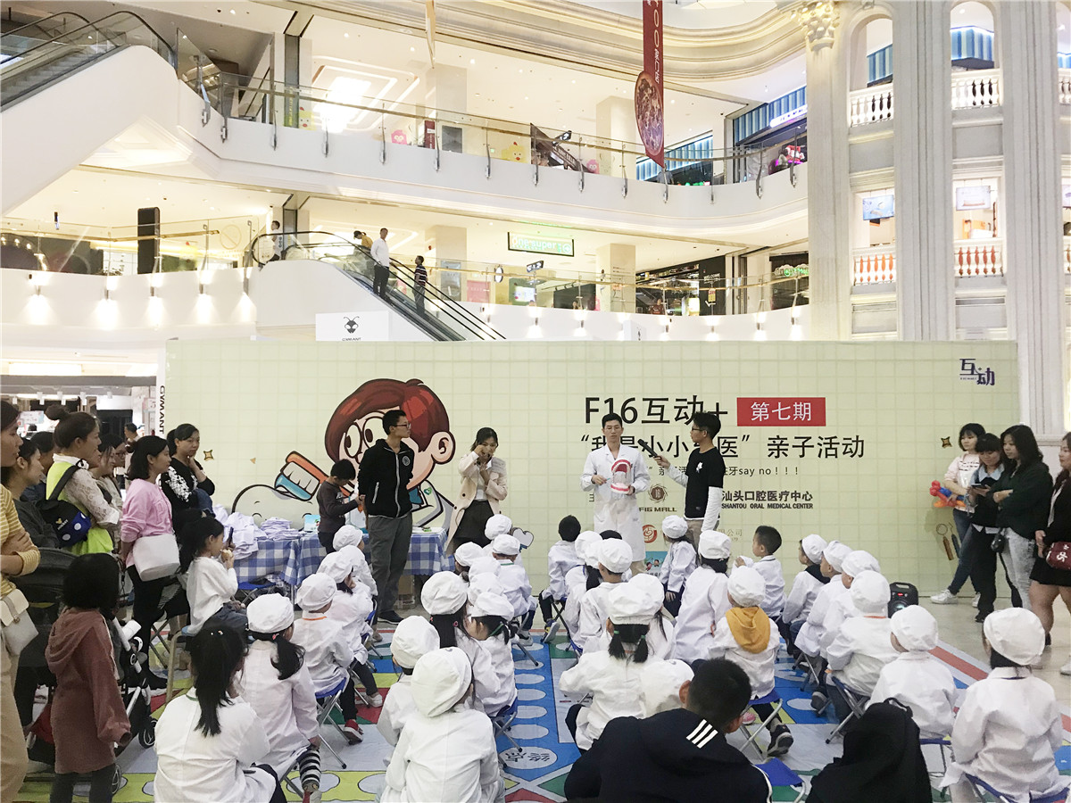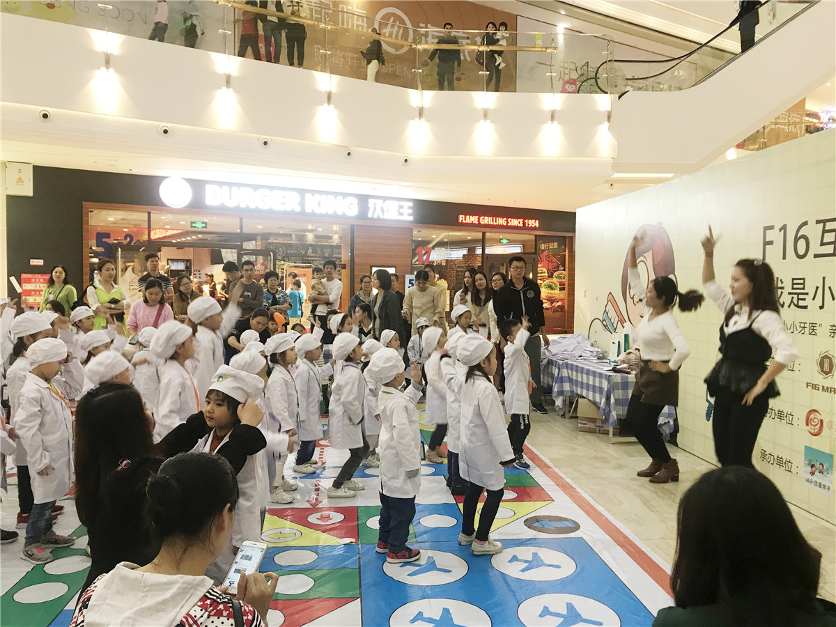 當天正是F16店慶日,晚上7:30分的時候廣場內(nèi)可謂是人頭攢動,可我們40多位小小牙醫(yī)都沒有被干擾,而是乖乖坐在活動現(xiàn)場上課。