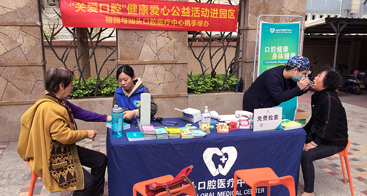 汕頭口腔醫(yī)療中心自建院以來(lái),一直專(zhuān)注于社會(huì)公益事業(yè),積極投身于各種公益活動(dòng)及社區(qū)義診活動(dòng),始終以服務(wù)社會(huì)、提高人民群眾口腔醫(yī)療保健水平為己任,秉承“誠(chéng)信、仁愛(ài)、合作、進(jìn)取”精神,繼續(xù)服務(wù)于廣大汕頭居民。