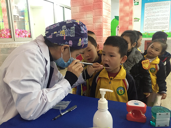 為了更好的關(guān)注孩子的口腔健康,讓孩子意識到口腔健康的重要性,醫(yī)護人員不僅為小朋友們做了細致的口腔檢查,同時利用口腔模型演示如何正確刷牙,通過口腔健康宣講,將“牙齒需要用心保護”的觀念傳達給他們,教給他們正確的用牙習慣,呼吁聯(lián)合教師、家長共同關(guān)注孩子的口腔衛(wèi)生。