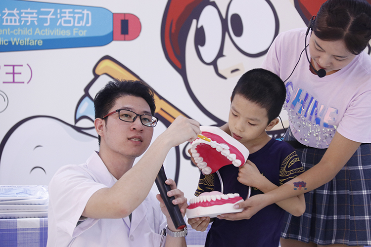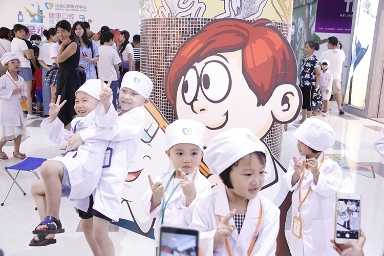 汕頭口腔醫(yī)療中心攜手存心善堂舉辦第四期“我是小小牙醫(yī)”親子體驗活動,在8月4日開始啦!本次活動通過聆聽口腔醫(yī)生的現(xiàn)場講解、有獎競答、牙醫(yī)角色扮演、給家長檢查牙齒等環(huán)節(jié),培養(yǎng)小朋友的愛牙意識,傳遞口腔健康知識,讓寶寶對保護牙齒有個正確的引導。