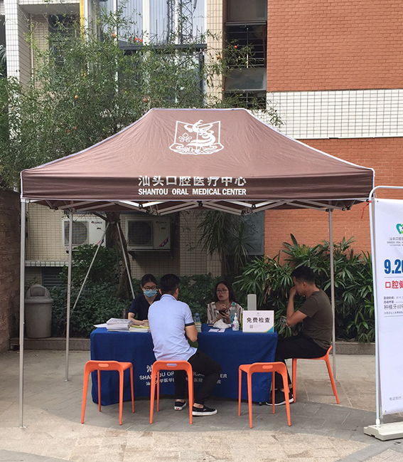 汕頭口腔醫(yī)療中心“關(guān)愛口腔幸福汕頭公益行”義診活動持續(xù)開展中。9月19日,我院醫(yī)護人員來到金鳳雅軒小區(qū)開展口腔健康科普宣教活動。